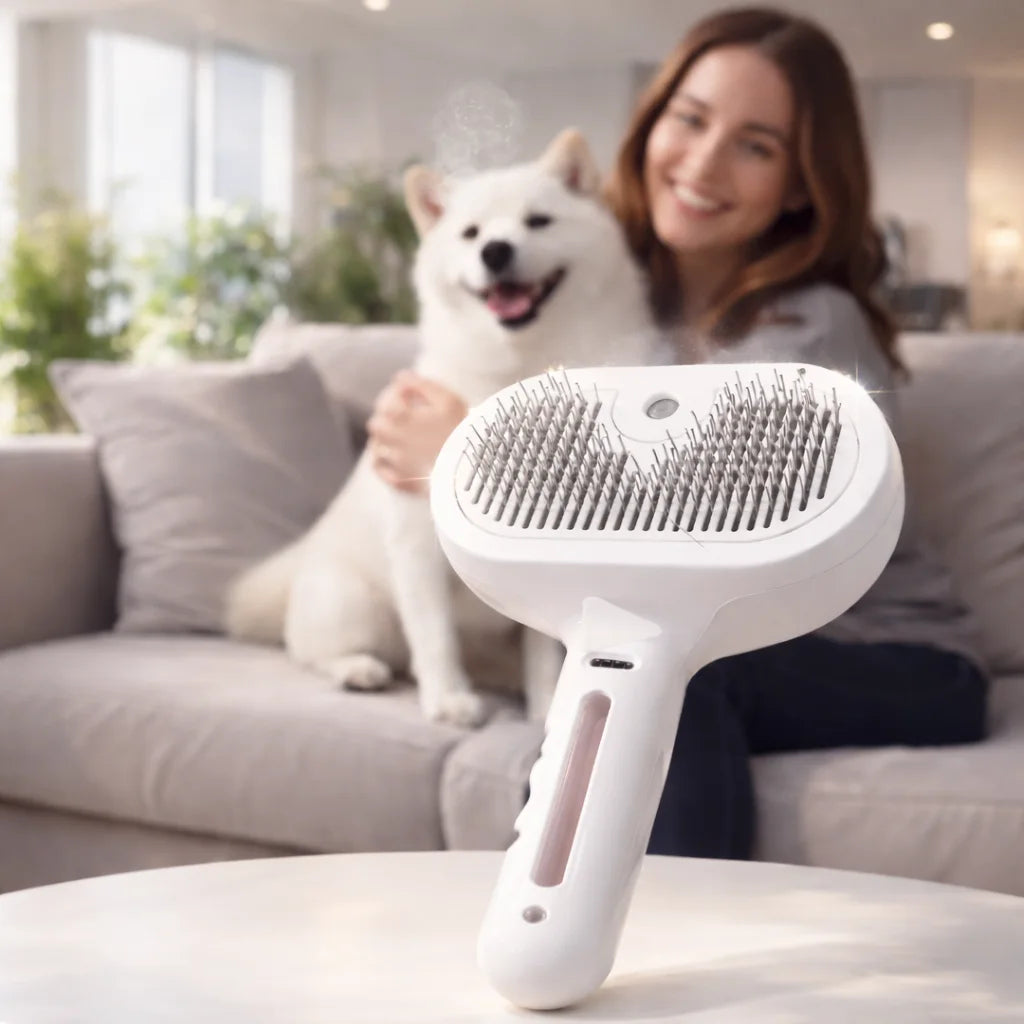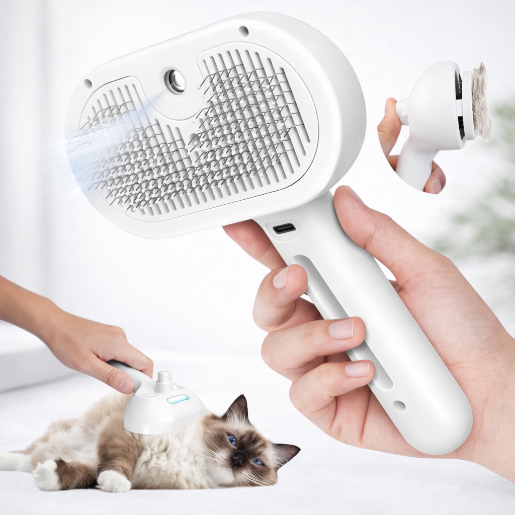Fellora™ ist die Dampf-Pflegebürste, die wirklich hilft: Sie entfernt lose Haare, Schmutz und Verfilzungen ohne Ziehen am Fell. Feiner, warmer Dampf öffnet das Fell, löst Ablagerungen und reinigt hygienisch – ganz ohne Chemie.